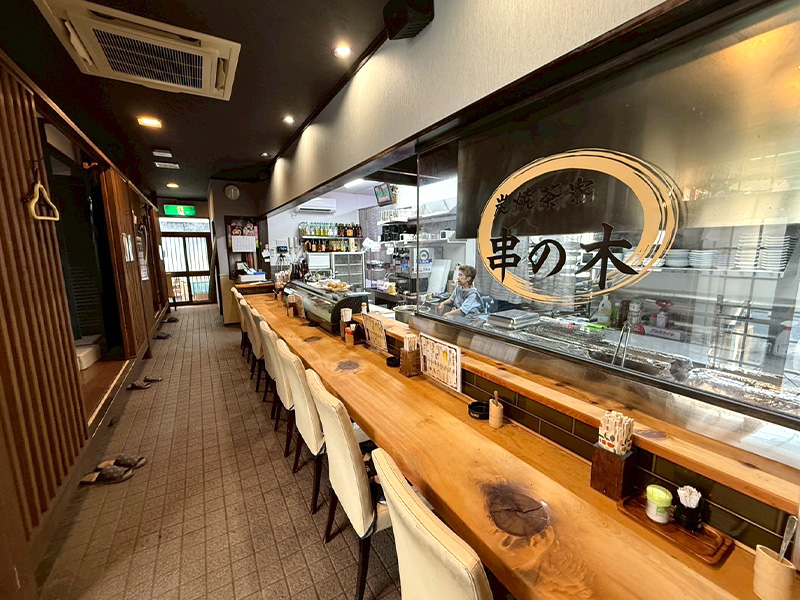 静岡県袋井市泉町の串焼き居酒屋「串の木」は、創業50年以上の老舗です。備長炭で一本一本ていねいに焼き上げる串焼きは、外は香ばしく、内はふっくら。ご家族三世代でくつろげるアットホームな店内で、各種ご宴会は最大35名まで承ります。コストパフォーマンスの良さにも定評があり、日曜日は14:00から営業しています。